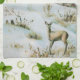 Vintage snow winter landscape with deer kitchen towel