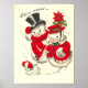 This is a vintage print of a Snowman couple that are out walking there snowman dog. Very cute print for the holiday season.