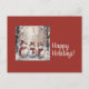 This charming postcard is the perfect way to share the warmth and love of the season with your family and friends. Three lovable snowmen, each wearing cozy scarves and cheerful red hats, evoke a sense of holiday merriment. Customize with your own customized message and return address to make the card uniquely yours. (Created using generic AI tools.)