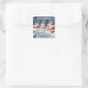 Vintage Snowy Christmas Red Houses, Church Square Sticker