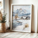 Vintage Snowy Mountain Cabin Landscape Poster