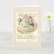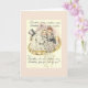 A vintage wedding card image features a bride and groom encircled within a gold wedding band. She holds her pink and white bridal bouquet and he doffs his black top hat. The verse on the front of the card says, "Something lasting, something sweet, something that is quite complete - Something old and something new, something fine for both of you!" The message inside the card is: "Best wishes for a lifetime of wonderful tomorrows."