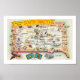 A wonderfully illustrated vintage postcard map of the state of South Dakota.