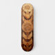 Spiritual skateboard with wood burning design with five circles and six lines, each line representing different spiritual symbols from the preColumbian era in M crushed sand painting style. The artwork is created using only shades of brown to capture depth, with an emphasis on sacred geometry patterns, showcasing detailed geometric shapes like stars or moons inside the circles. This depiction highlights intricate details within each circle while maintaining symmetry throughout the piece