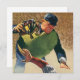 Vintage illustration sports baseball design featuring an umpire ripping off his safety mask and calling a baseball player safe at home plate. The batter ran all the bases for a home run and was safe at home base.