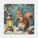 Vintage Squirrel with Christmas Lantern Winter Magnet