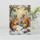 Vintage Squirrels Gathering Pinecones Christmas Holiday Card