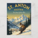 Vintage St. Anton Austria Skier Skiing Postcard