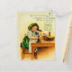 Vintage St. Patrick's Day Wishes Postcard featuring featuring a little girl in green sitting on a stool with a vintage phone. She appears to be sending St. Patrick's Day's wishes.