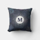 Vintage stamp pattern pillow in blue with a sun that holds your initial.