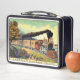 This is a standard metal lunchbox that appears to work just fine. We designed this box ourselves with an uploaded photo and custom text on the front and back. It looks absolutely beautiful except the front of the lunchbox is not centered like it shows in the photo. The print borders don't align with the inset flat part of the box where the preview photo online showed it perfectly centered in there. The back looks nice and centered though.