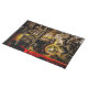 Purchased for a sister who throws Halloween block parties. Even with all the other stuff she has for this, I know she does not have this Exact one. Yeah personalization! Placemat has nice heft and is seamed around the edges well. Purchase complementary items too. Print is clear and well centered.