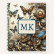 A pretty monogrammed metal steampunk butterflies and gears personalized notebook.