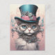Vintage Steampunk Cat in Blue Tophat Postcard