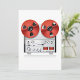 Stereos have come a long way from how they used to be. This design a cool vintage stereo. It has two big tape reels at the top. This vintage stereo design looks great on these invitations