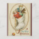 This postcard features a vintage illustration of a stocking with a doll and teddy bear in it. The flip side of the original postcard shows that it was printed in Germany and postmarked in 1908.