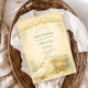 A charming storybook-style baby shower design featuring a sweet watercolor goose standing beside a nest filled with pastel eggs. Delicate spring flowers and soft greenery create a gentle countryside scene, while a blush bow and sage gingham background add a cozy cottagecore touch. The vintage illustration style and soft pastel palette give this design a whimsical nursery feel, perfect for a playful and heartwarming baby celebration.