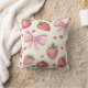 Embrace the coquette, aesthetic, with this charming watercolor, strawberry, and, pink, bows, decorative pillow. Featuring a sweet, hand-painted, fruit, pattern, with delicate ribbons, and, polka, dots,, this cushion adds a touch of vintage, cottagecore, feminine, style, to any space. Perfect for a nursery, teen, bedroom, girl's, room, or, cozy, reading, nook,. This high-quality, fabric, throw, pillow, is a beautiful housewarming, or, birthday, gift, for lovers of shabby, chic, and, grand millennial, decor,.