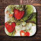 Vintage strawberries - square paper plates .Graphic illustration featuring some ripe and unripe strawberries with green leaves . It has nice early summer feel . You can customize this item with your monogram/text /logo .