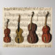 Beautiful digital art print features background of antique music sheet with four assorted string instruments