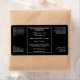 A product label for cosmetic bottles featuring a black background and a vintage style. This label contains space for your product name, business name, product weight, ingredients, instructions, social media, and business address. This label measures 3.75 inches by 2 inches (95 mm by 51 mm) and is suitable for bottles with a diameter of 1.2 inches (31 mm) or more such as 4 oz (120 ml) bullet, cylinder, and boston round bottles. It can also be used for cosmetic jars and other types of cosmetics packaging.