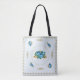 Blue Rose Design tote bag with calligraphy. Oh most beautiful flower of Mount Carmel, fruitful vine, the splendor of heaven. Gift for mother or grandmother or yourself. Original design.