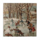 A vintage winter landscape scene featuring a boys girls ladies and man enjoying snowball fights and ice skating