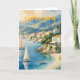 French and European Travel Advertisements - Beach, village, people, trees, blue sea and sky illustration