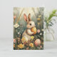 Vintage Style Easter Rabbit Card, A sweet illustrated Easter postcard of a whimsical bunny holding a golden egg, surrounded by blooming spring flowers. DM if you would like this design on other products.