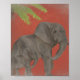 A mom and baby elephant decorate this vintage style poster.