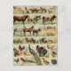 This image is a reprint of a vintage farm animal painting. The image contains multiple farmhouse animals such as birds, cows, horses, pigs, dogs, and more. Postcard is new but design is vintage inspired.