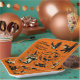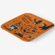 These square paper plates are perfect for your Halloween party. They feature an assortment of vintage style graphics with a witch, black cats, a jack-o-lantern pumpkin, a bat and lots of stars in black cream and orange against an orange background. These plates are ready to be personalized with your own Heading in bold print lettering and your own subtitle in script lettering.