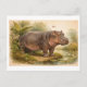Vintage-Style Hippo Illustration Postcard