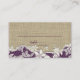 Vintage style lace design and burlap look information seating cards. To compliment invitations, customize text as needed. Add the bride and groom's names with a monogram and wedding date to the back. Not real burlap.