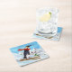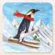 Vintage Style Penguin Downhill Skiing Square Paper Coaster