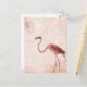 This design is an elegant vintage-inspired pink flamingo over a light pink background of newsprint and subtle flowers. The postcard is new but the design is vintage inspired.