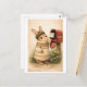 This is an AI-generated image of a rabbit in a sweater and cap mailing a postcard.