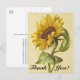 This floral themed design features a vintage style depiction of a sunflower plant. The back feature a personalized thank-you message. A postcard like this might be sent to show thanks to somebody who has attended an event, given a gift, offered support, or done some other special deed.