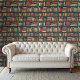 Vintage Style Vibrant Library Books Wallpaper