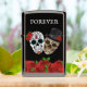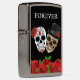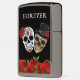 Romantic and full of color zippo lighter featuring a couple of vintage Sugar Skulls decorated with red roses; customizable "forever" typography complete's the design.
