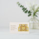 This business card features an illustration of vintage striped, tweed suitcases in tan and brown colors.