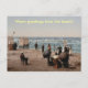 Vintage sun bathing people on the beach postcard