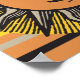 Big smiling vintage sun with face woodcut type illustration on stripes background in orange, yellow, black. Happy, artsy sunny and fun design. Great for beach house or boho maximalist decor.