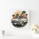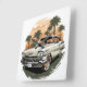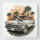This piece captures the essence of a bygone era, inviting you to relive the timeless joy of coastal drives and the freedom of the open road. The warm hues of the setting sun and the silhouetted palm trees create a serene backdrop, perfect for adding a touch of retro sophistication to any space.