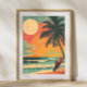 Vintage Surfer in Summer Sunset Retro Poster