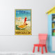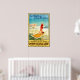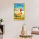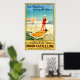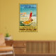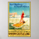 Not surfing as we now know it. Surf Bathing in South Africa. A train travel advertisement by the Union Castle Line to South & East Africa. Surfing consists of a woman standing on a flat platform holding a rope.