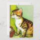 Card featuring a sassy tabby cat! This pretty tabby poses next to a basket and flowers. A perfect gift for cat lovers and Victorian art enthusiasts!