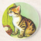 Sandstone Coaster featuring a sassy tabby cat! This pretty tabby poses next to a basket and flowers. A perfect gift for cat lovers and Victorian art enthusiasts!