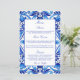 Vintage Talavera Azulejo Mediterranean blue and white tiles wedding menu card template