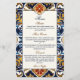 Vintage Talavera Azulejo Mediterranean blue brown tiles wedding menu card personalized wedding reception stationery personalized menu cards